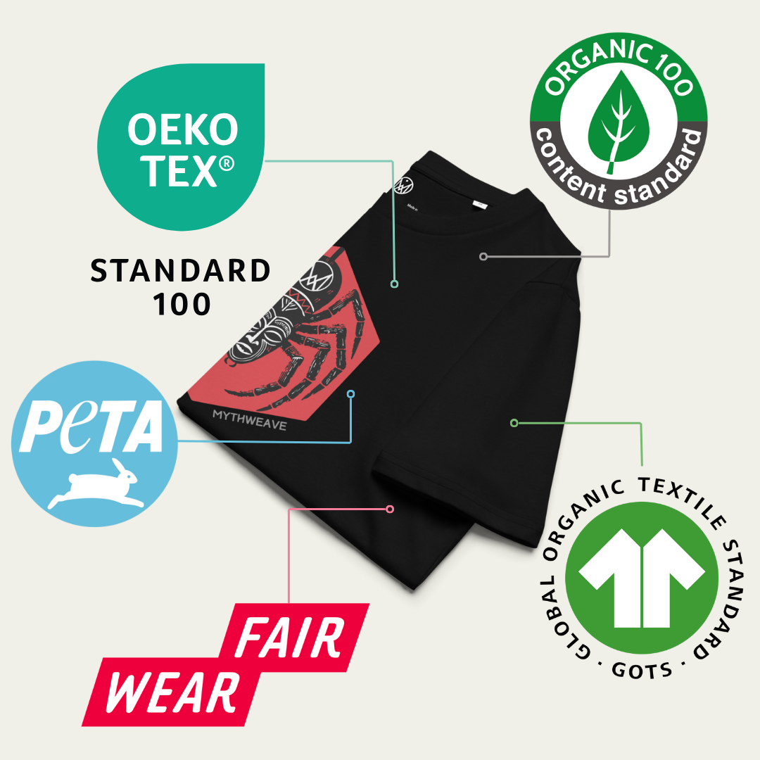 Le tissu de ce produit est également approuvé par l'association PETA (People for the Ethical Treatment of Animal) et certifié par : OCS (Organic Content Standard), GOTS (Global Organic Textile Standard), OEKO-TEX Standard 100.