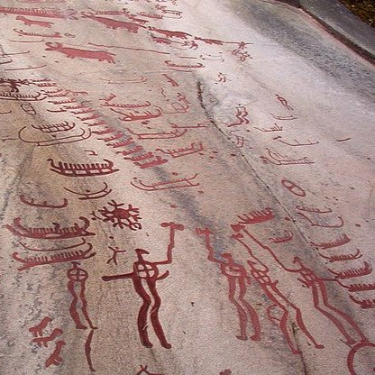 Dans les pétroglyphes (gravures rupestres) de Tanum, en Suède, des navires ornés de symboles magiques naviguent sur des mers oniriques, illustrant le passage entre les différentes étapes de l’existence.