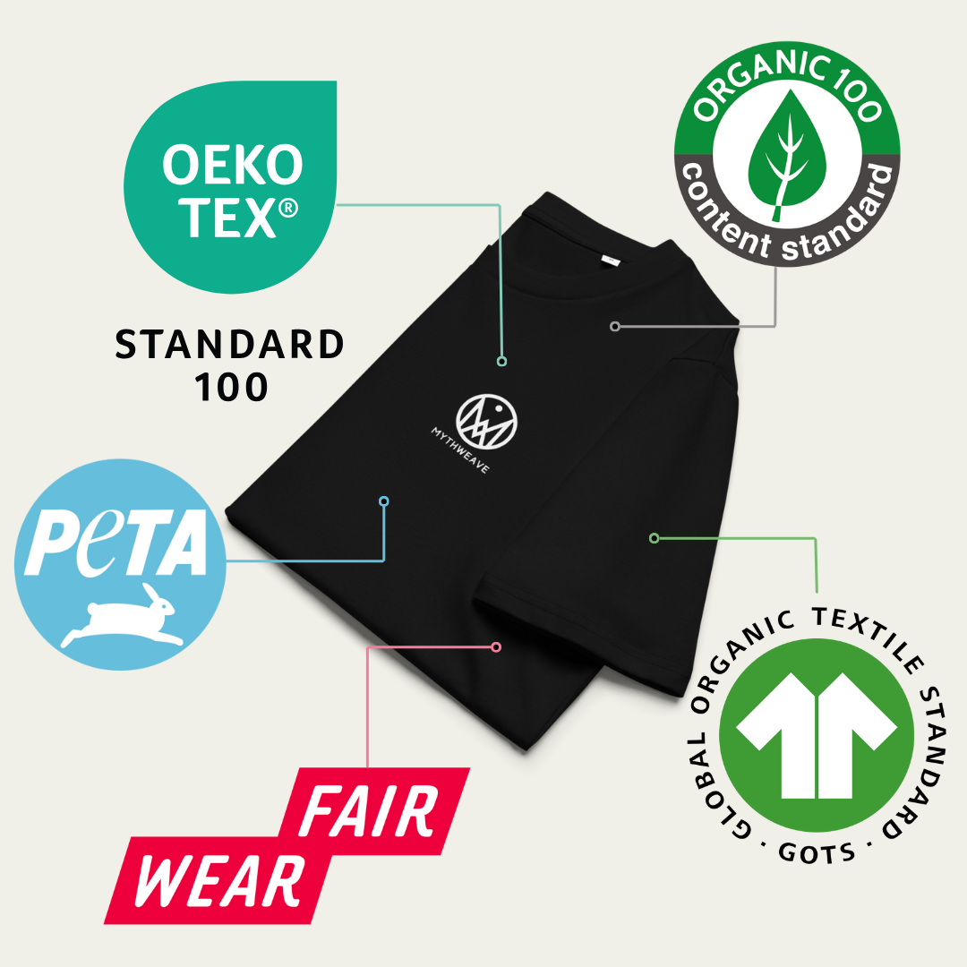 Le tissu de ce produit est également approuvé par l'association PETA (People for the Ethical Treatment of Animal) et certifié par : OCS (Organic Content Standard), GOTS (Global Organic Textile Standard), OEKO-TEX Standard 100.